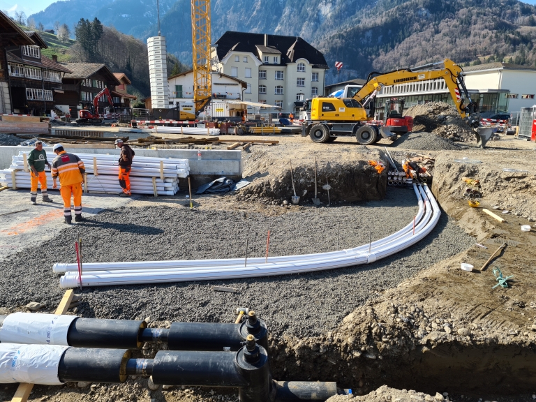 Über dem Deckelbau im Dorfbereich finden bereits die Wiederherstellungsarbeiten der Strassen, Plätze und Gärten statt. Ziel ist es, die Oberfläche Ende 2021 an die Benutzer zu übergeben. Somit steht der grosse Parkplatz hinter dem Bahnhof für die Gäste der Jungfraubahnen bereits diesen Winter wieder zur Verfügung.