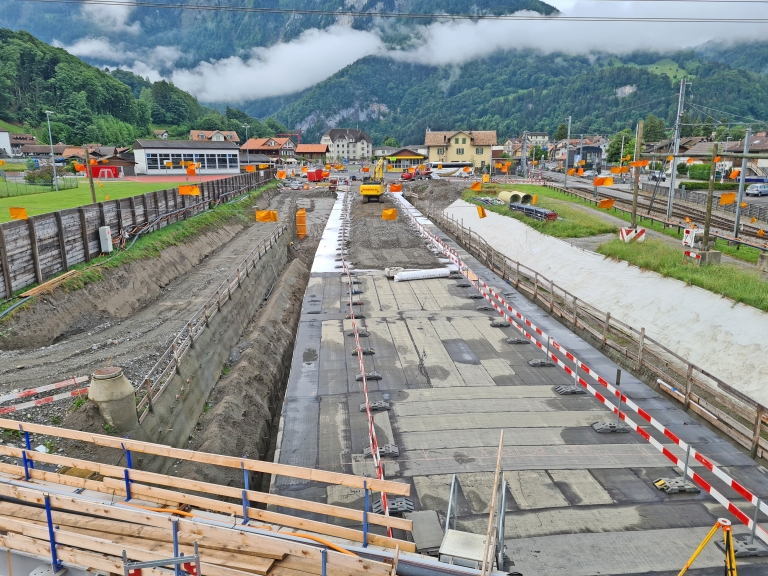 In einer Intensivbauphase wurde Ende 2019 die Bahnlinien der BOB und Schynige Platten-Bahn mittels Deckelbauweise unterquert. Dies im Hinblick auf eine niveaulose Querung des Baustellen- und Bahnverkehrs für's Hauptlos. Somit wurden bereits im Vorlos fünf Tunnelblöcke mit einer Länge von total gut 60 m erstellt.