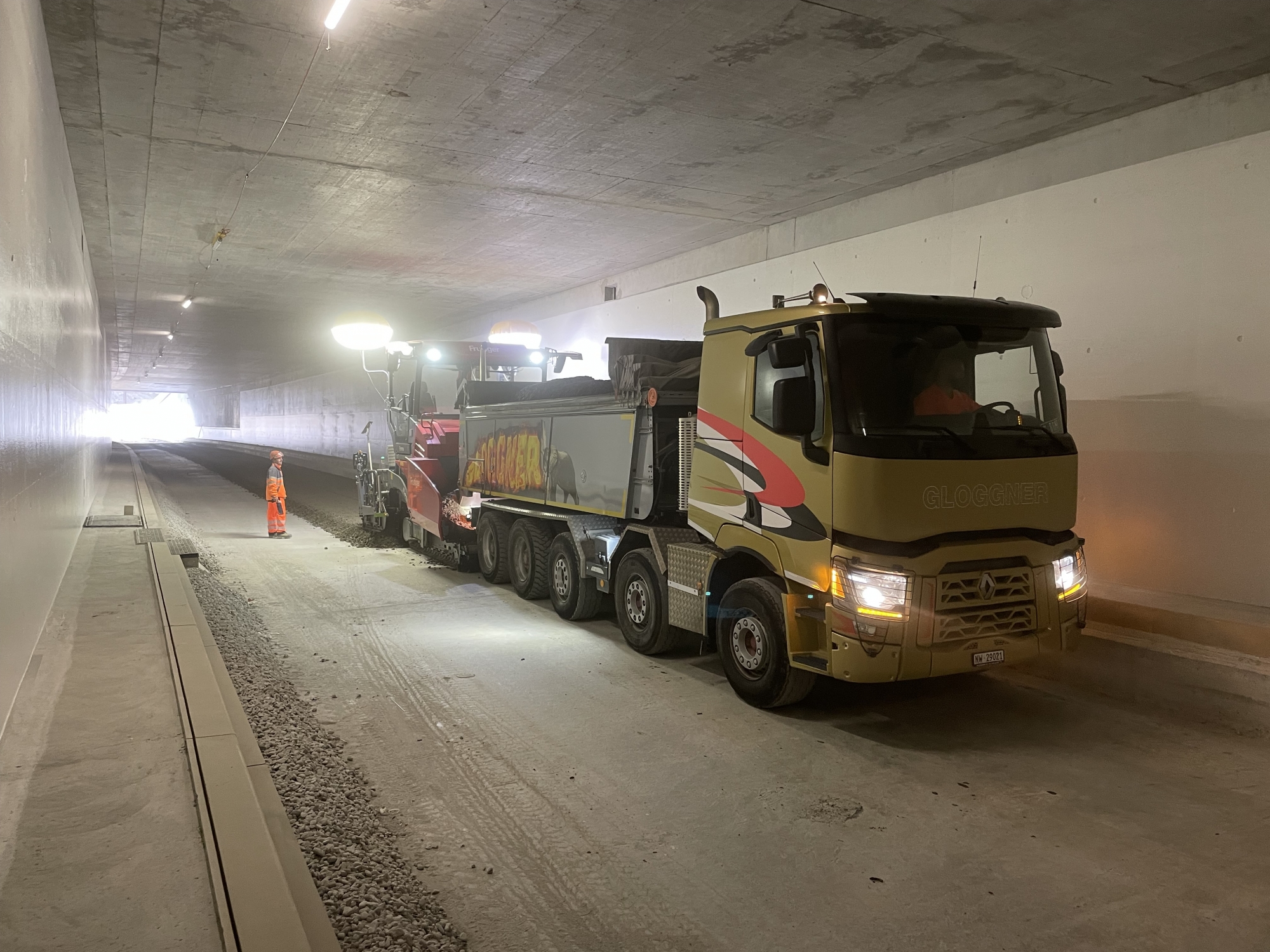 Bis Ende 2022 stehen noch weitere Gelände- und Belagsarbeiten an, um den Hauptteil der Umfahrung, den Tagbautunnel, auf Anfang 2023 an den Folgeunternehmer der Betriebs- und Sicherheitsausrüstung (BSA) zu übergeben.