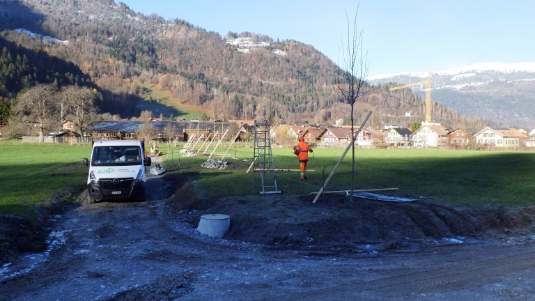 Im ganzen Projektperimeter erfolgten diverse Umgebungsarbeiten wie die Schüttung einer Geländemodellierung in der Oberey oder das Erstellen eine Blocksteinmauer in der Flisou. Zudem wurden noch letzte Werkleitungsarbeiten ausgeführt. Durch Folgeunternehmer erfolgten die ersten Bepflanzungen und es wurden Zäune und Absturzsicherungen erstellt.