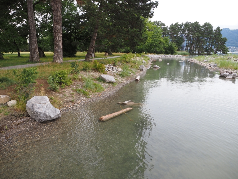 Die Kissling + Zbinden AG durfte massgebend am Projekt mitarbeiten und hat Planungen für das naturnahe und zugängliche Ufer, die Pfählung der Aussichtsplattform sowie für die Sanierung des Kanals durchgeführt.