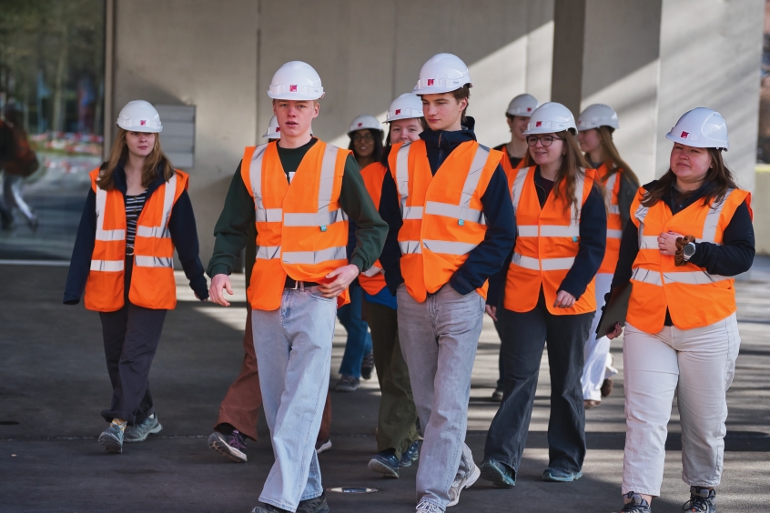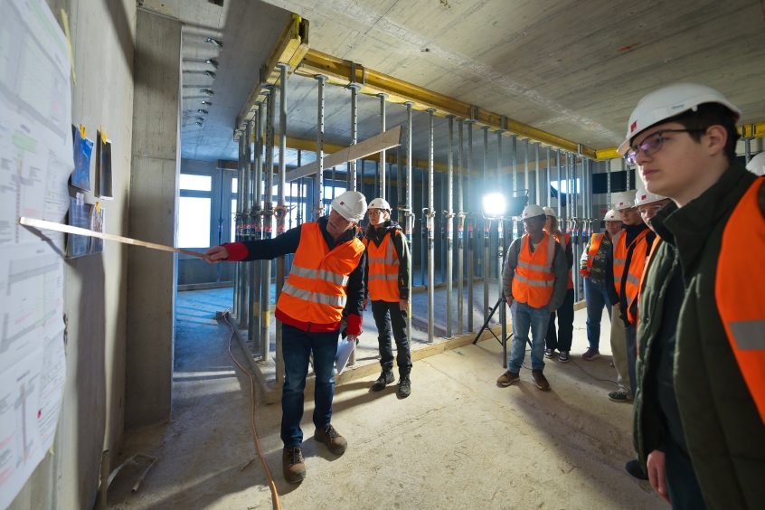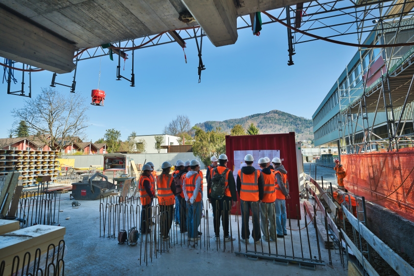 Besonders gefreut hat uns das grosse Interesse und die engagierte Teilnahme der jungen Besucherinnen und Besucher. Während der Baustellenführungen entstanden zahlreiche spannende Gespräche, in denen viele neugierige Fragen gestellt und unterschiedliche Themen vertieft wurden. Der anschliessende gemeinsame Lunch in der Aula bot zudem einen idealen Rahmen für einen offenen und lebendigen Austausch in entspannter Atmosphäre.