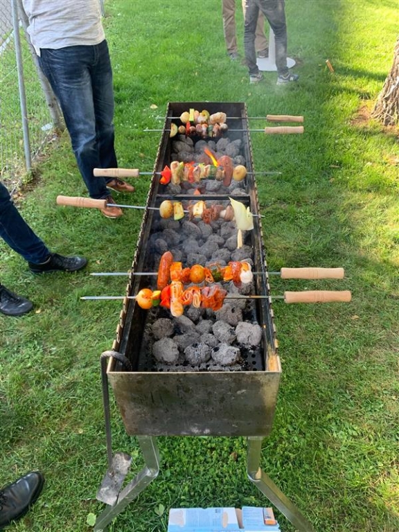 Am Donnerstag, 10. Juni trafen wir uns zu einem gemütlichen Abend bei gutem Essen und von einem Mitarbeiter selbstgebrautem Hügu Bier. Grilliert wurde mit einem Spiessli-Grill. So hatten alle Mitarbeitenden die Möglichkeit, ihr eigenes Spiessli je nach Geschmack zusammen zu stellen und selbst auf dem Holzkohlegrill zu grillieren.